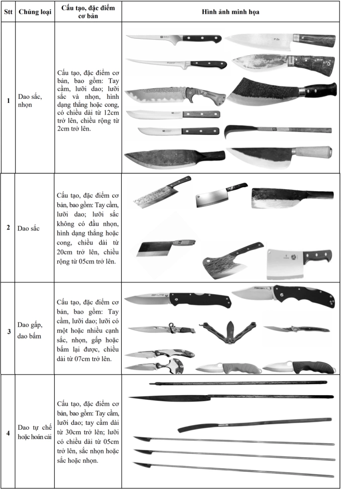 >> Chi tiết danh mục Dao có tính sát thương cao,được thống kê trong phụ lục 5,Thông tư 75 như sau: