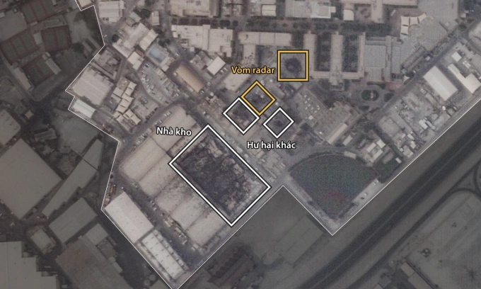 Thiệt hại tại căn cứ Hạm đội 5 hải quân Mỹ ở thủ đô Manama của Bahrain trong ảnh chụp hôm 1/3. Ảnh: Planet Labs